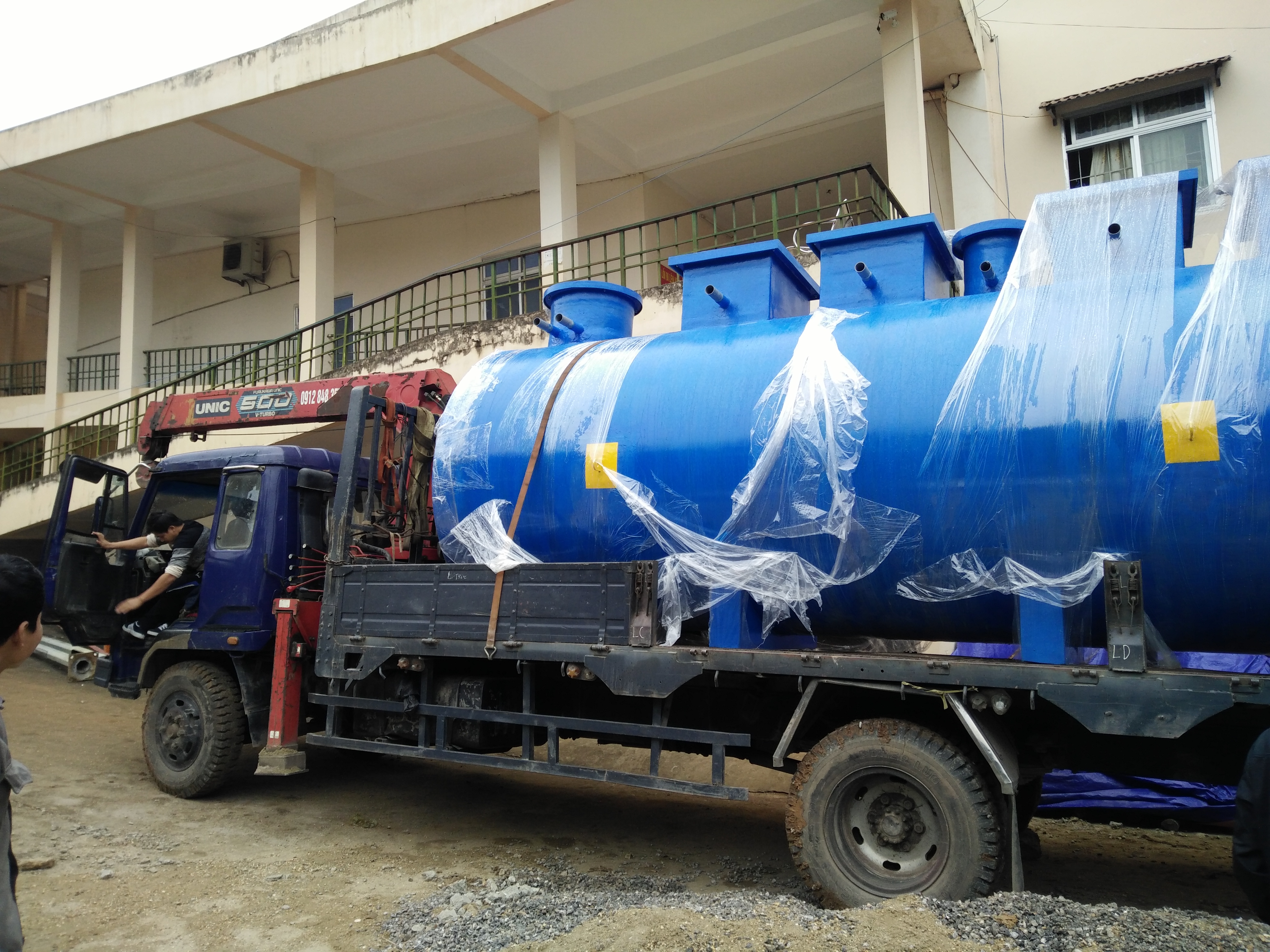 Vận chuyển bồn xử lý nước thải từ nơi sản xuất đến địa điểm thi công