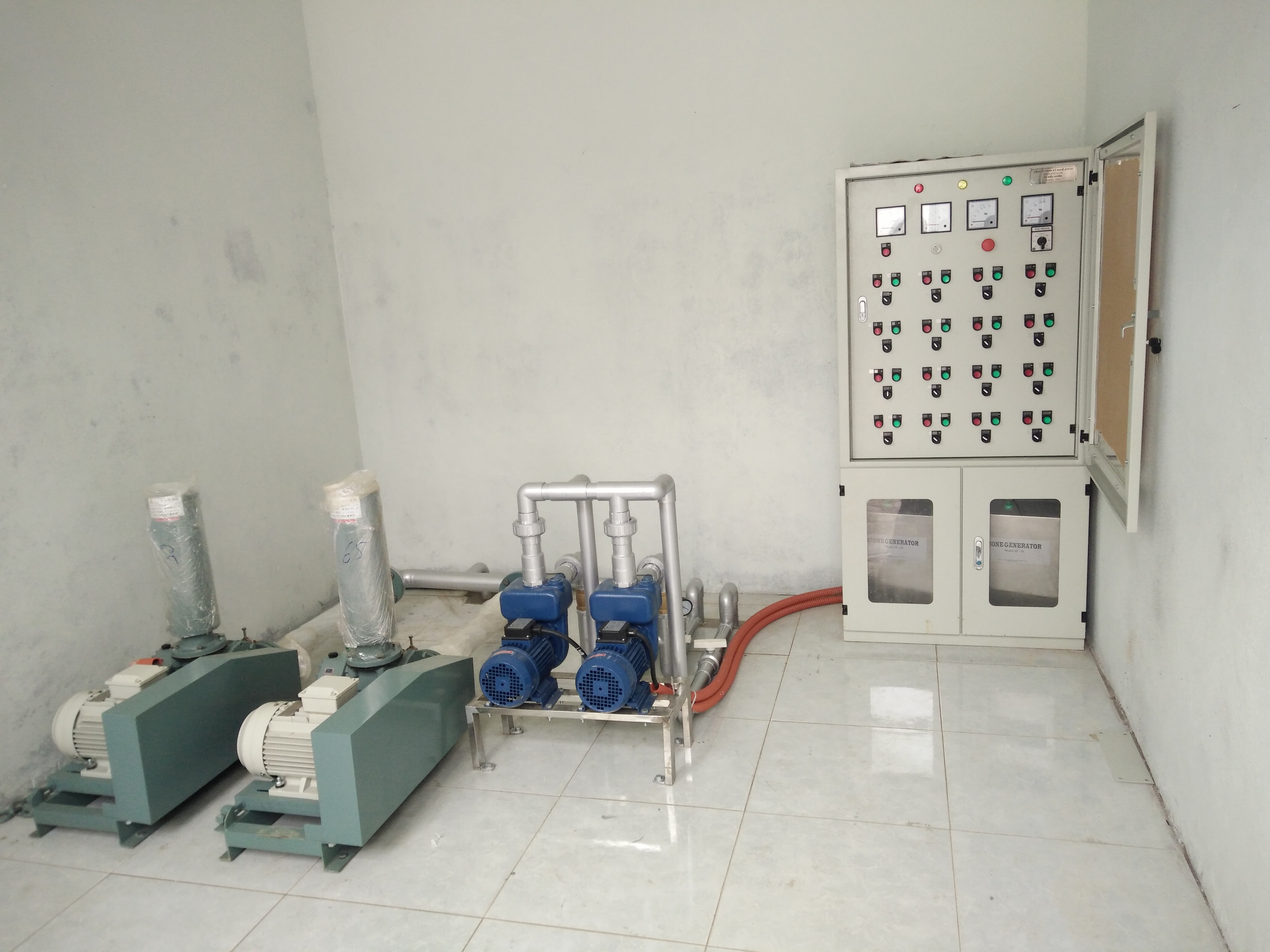 Hình ảnh nhà điều hành bao gồm tủ điều khiển, 2 máy thối khí cạn và 2 máy bơm màng